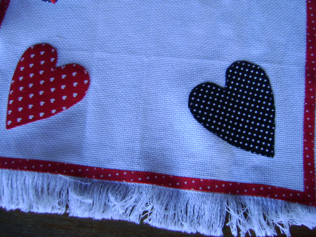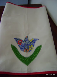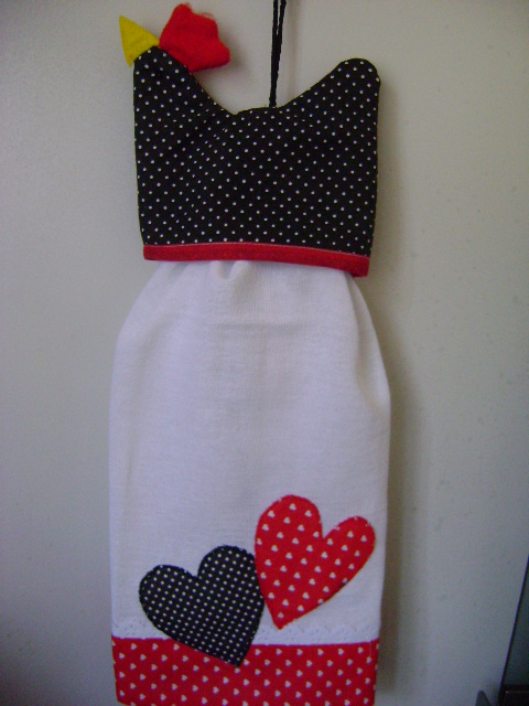O pano de prato da lojinha querida de 1,99 costurei uma barra no tecido vermelho e dois corações em patchcolagem.O suporte para pano de prato ganhei da PrimaSonia, aquela que minha amiga Regina Coeli falou AQUI.