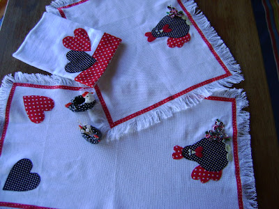Gostei das minhas galinhas, e patchcolagem no etamine é bem legal. Agora vou entrar na era toalhas e tapete para banheiro. Mostro para vocês.