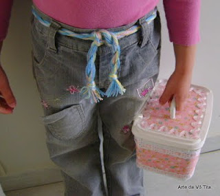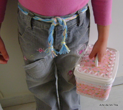 Com uma latinha de tinta esmalte AZUL, outra branca , retalho com motivos de ursos, bordado inglês e lacinho de cetim, ele ficou novinho.