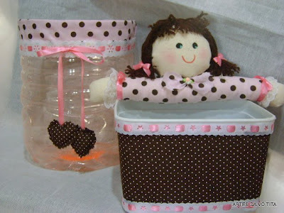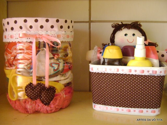 Aproveitando mais um galão de agua e um pote de sorvete, reciclei e organizei como fiz AQUI.