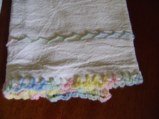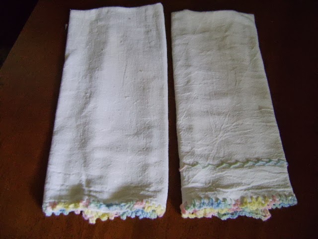Quem me conhece sabe que já fiz vários e postei aqui no blog.Procurei e não encontrei,mas encontrei tres panos de saco alvejados e não tive dúvidas.Cortei e fiz 2 bate mãos.