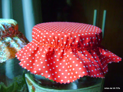Vou preferir fazer "chapeuzinhos" para as tampas. Gostei de decoupagem mas prefiro minha máquina de costura.