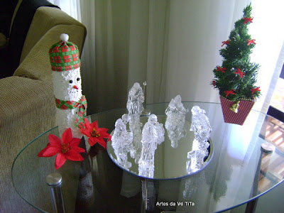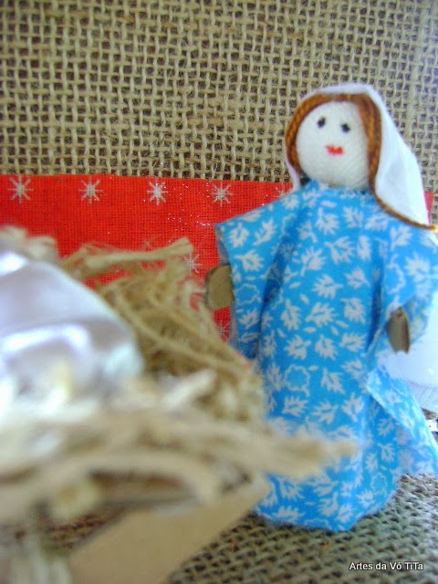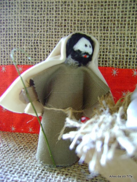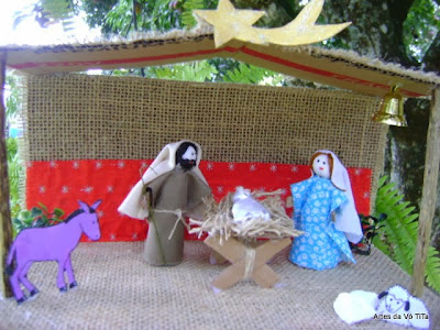 Este ano fiz este usando papelão,retalhos e juta.Vou levar para as netinhas mais novas.