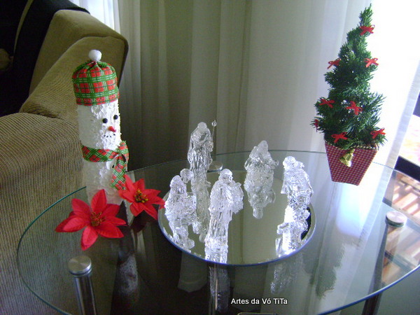Desde menina sou apaixonada por presépios. Fiz o primeiro aos 9 anos na véspera de Natal.Usei retalhos e uma bonequinha de plástico (Menino Jesus). Já fiz muito e vendi para os amigos de papel machê.