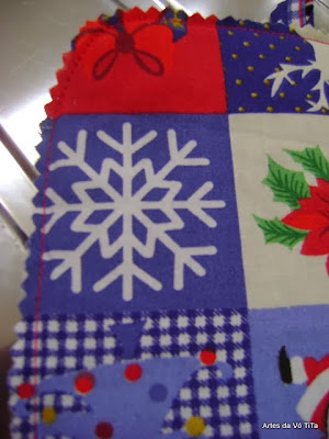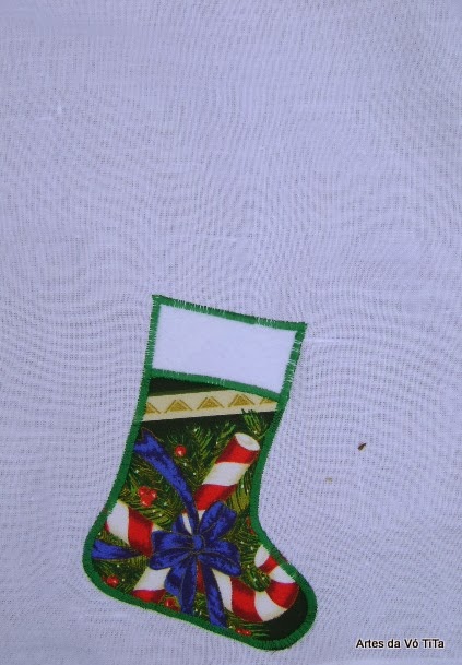 Apliquei com minha Janome, no ponto zig zag uma arvore de Natal. O risco encontrei no Google.