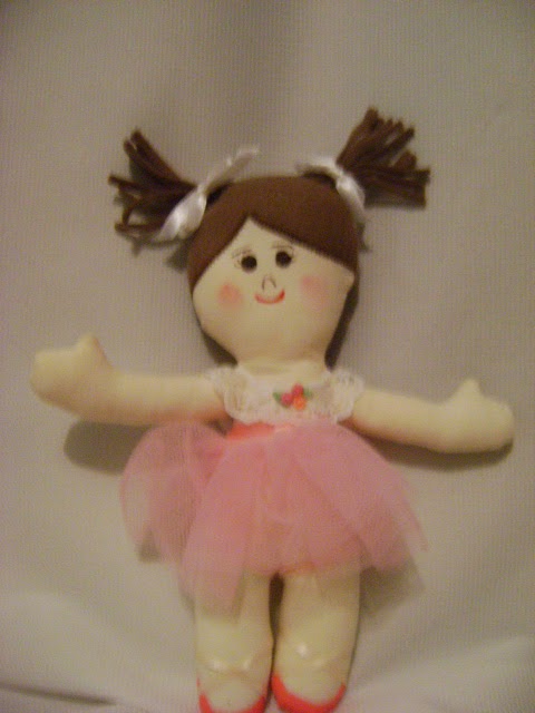 Para cortar,fiz o molde colocando a boneca sobre um papel e riscando com giz de cera.Usei ponto zig zag para dar acabamento.