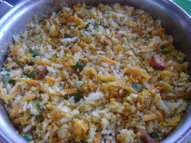 Depois coloca a margarina, cenoura, cebola, cebolinha