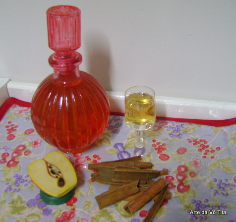 mas o básico é: Colocar por 15 dias na aguardente 4 maças, cortadas em