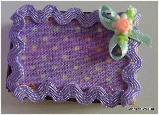 Para dar acabamento na caixa de fósforo, tecido, sinhaninha e florzinha de biscuit.Uso cola branca.